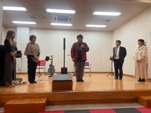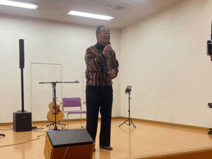 *皆様方でカラオケ大会/今回は、生伴奏をご希望の方は清水さん、井野さんがギターでご協力