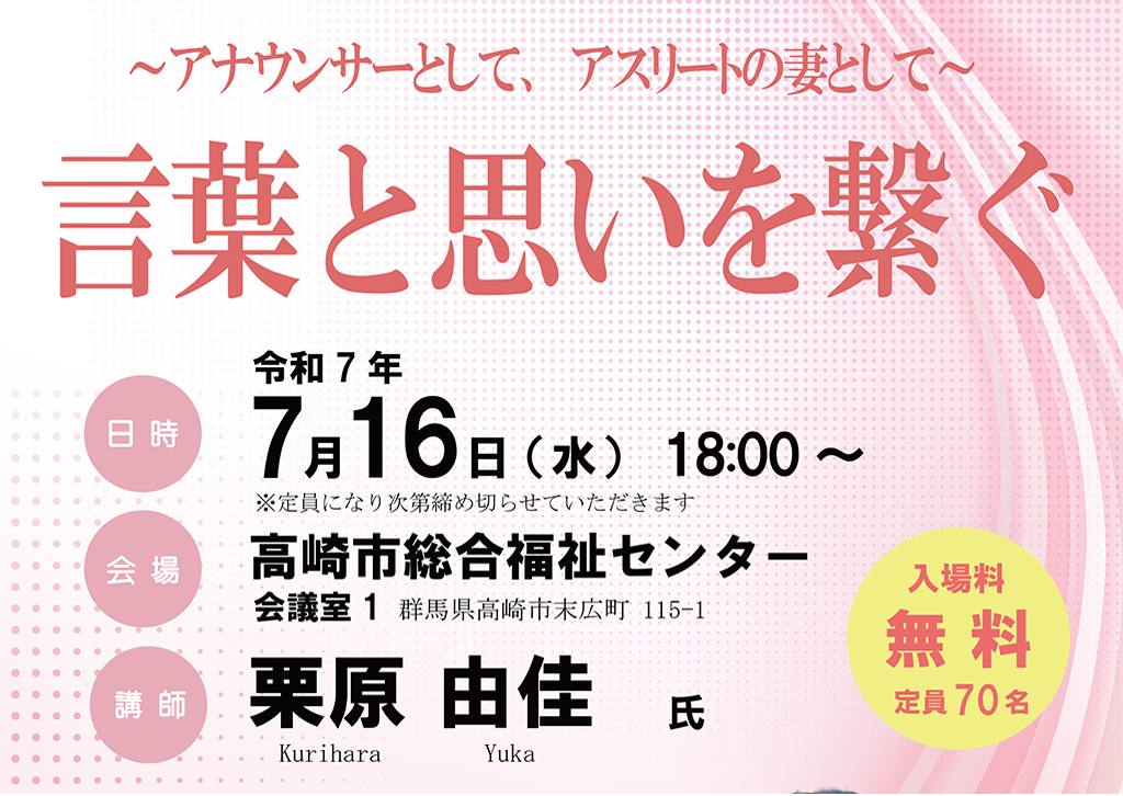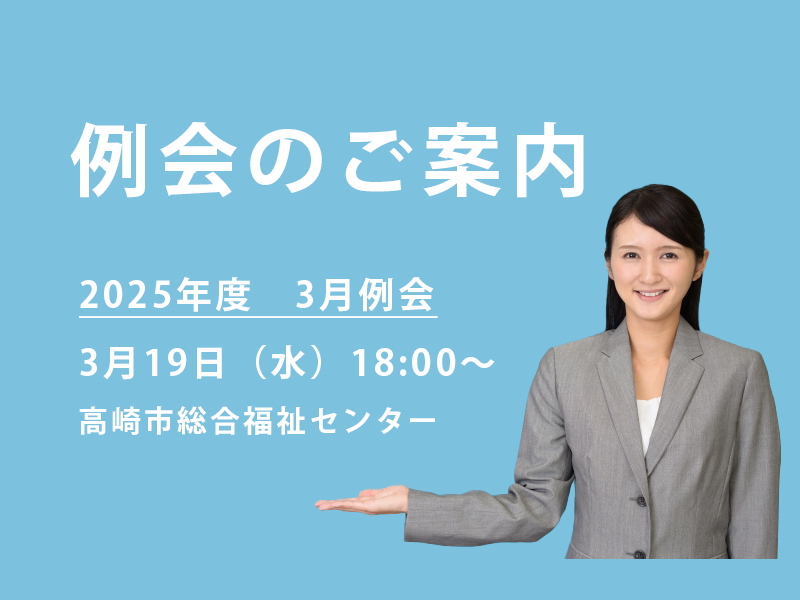 こんにちは。ひと際厳しい残暑が続く昨今、皆さまいかがお過ごしでしょうか?さて、9月例会のご案内をお届けします! ■開催概要日時:9月17日(水)18:00~20:00会場:高崎市総合福祉センター申込締切:9月9日(火)※お茶とお菓子をご用意しますので、出欠… -