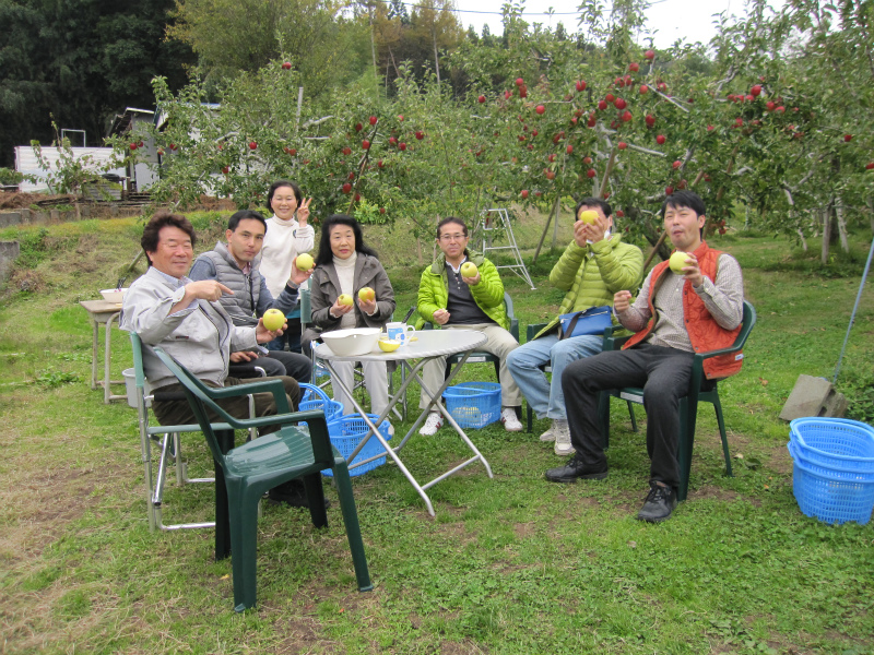 今回は、名月・陽光・ふじの3種類のりんごを実際にもぎ、食べさせて頂き、帰りには、お土産の名月も頂きました。