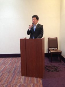 引き続き、代表挨拶ののち記念式典ご来賓の異業種交流会「ビーネット21」創業メンバーである当時、日産火災海上の高田博康様よりご挨拶をいただきました。