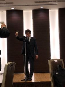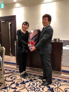 懇親会では長年代表を務めていただきました宇田さんに、会より花束を贈らせていただきました。また、小島さんと、清水さんが役員を降りられましたので挨拶を頂きました。