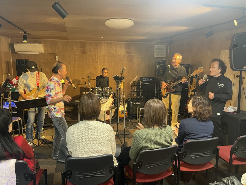 12月に入り年暮れでご多忙の中、会員の方々やザ・ビーネッツメンバー、共演のザ・プラネッツの方々も含め、27名の方々にご参加頂き、大変楽しい時間を過ごすことが出来ました。