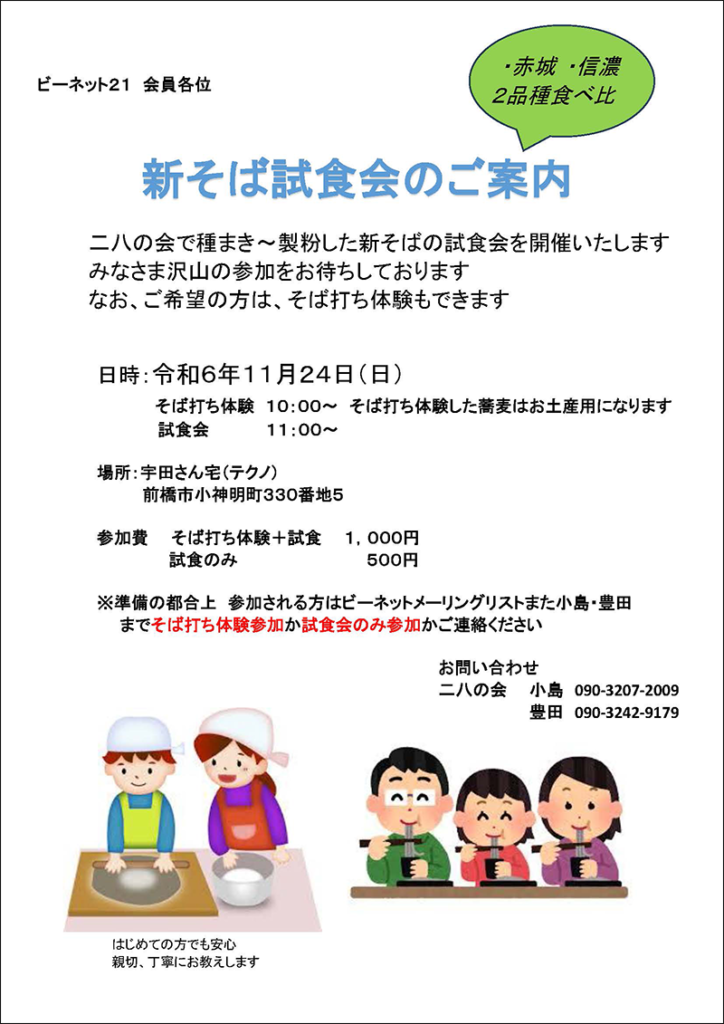 今年は赤城・信濃と2品種の手打ちそばをご堪能いただけますので、皆様のご参加お待ちしております。