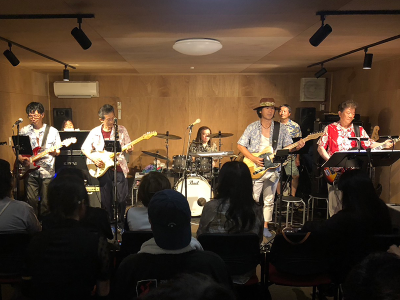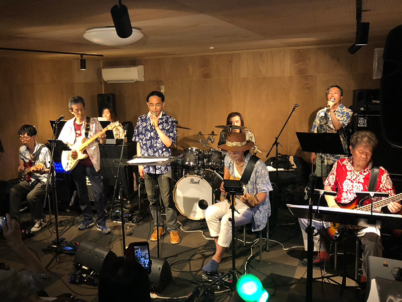 そして、我らザ・ビーネッツ!真夏に相応しいベンチャーズの演奏、そして伊藤さんと土田さんのコーラスで会場を沸かせました。1部の最後には、ザ・ビーネッツとアルティメット・ゼロさんとのコラボでStand By Meを演奏して1部を締めくくりました。