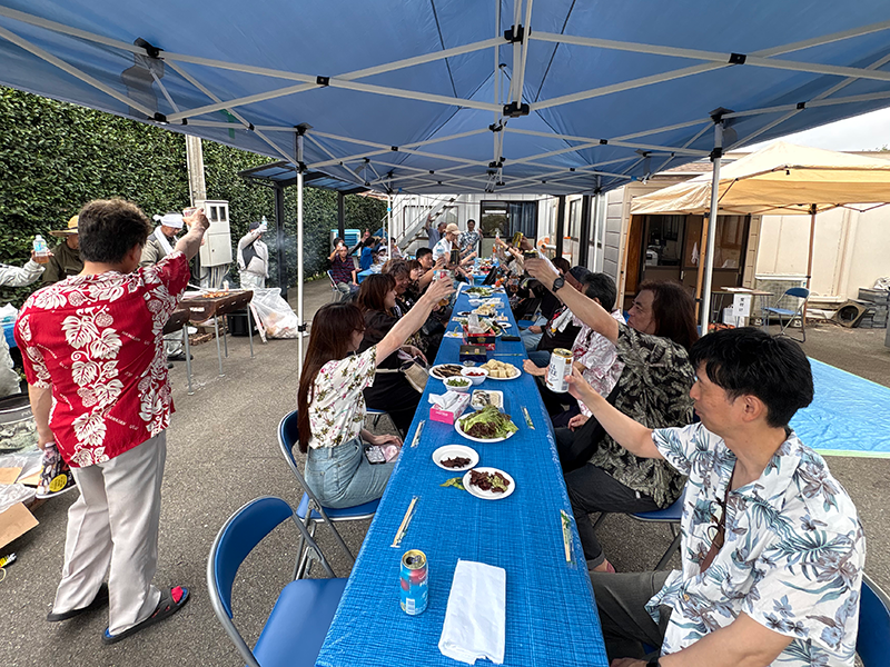 また、アルコール類は宇田さんが提供してくださり、さらには会場の設営、準備、焼き方、その他諸々を有限会社テクノの社員さん達のお力添え、部会のメンバーの協力があり今年も格安料金での開催を実現することができました。