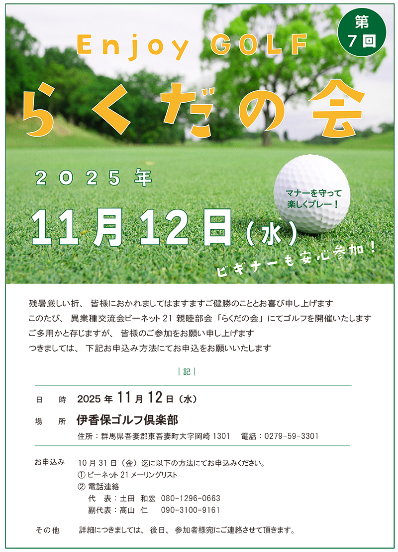第7回らくだの会ゴルフコンペ開催のご案内です。