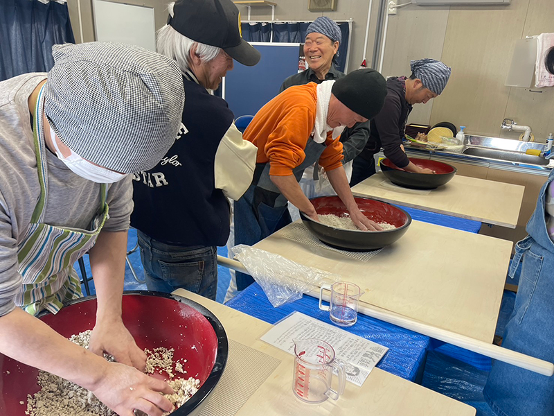 おいしい蕎麦のために、栽培から蕎麦打ちの全工程を行い、その技術と知識の向上を飽きることなく追究する部会です。蕎麦好きの人たちが自主的に会に参画し、お互いに交流をはかり、豊かな時間を楽しむことを目的としています。